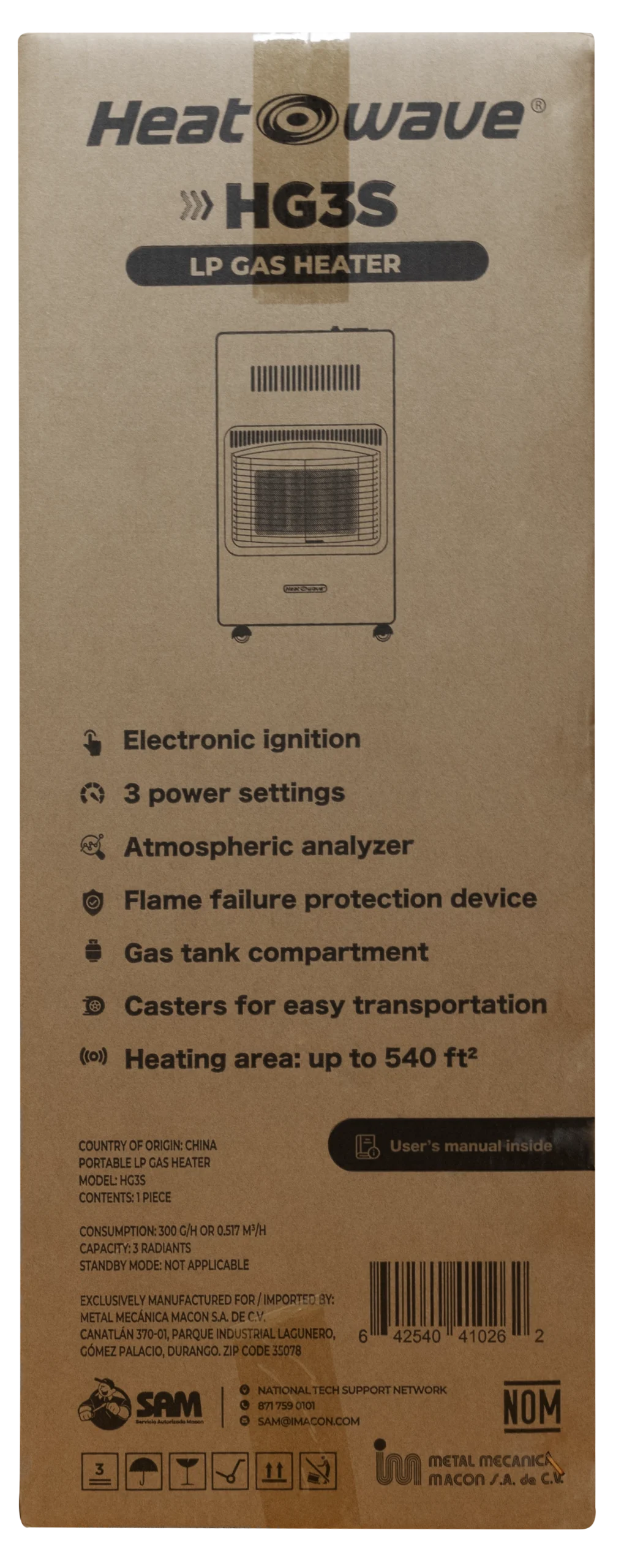 El modelo HG3S de Heatwave es un calefactor portátil infrarrojo a gas, ideal para calentar espacios interiores de hasta 50 m². Su diseño compacto y portátil, junto con sus múltiples sistemas de seguridad y radiantes cerámicos de alto rendimiento, lo convierten en una solución eficiente, confiable y fácil de usar durante la temporada de frío.
